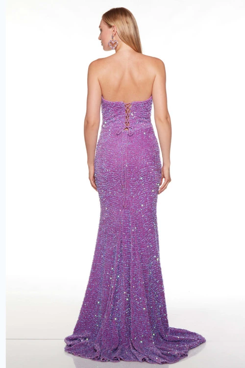 Break hearts in this strapless formal gown. The sweetheart neckline is overshadowed by the ruched fitted bodice. Highlight your curves and tone legs from the high slit on the side.