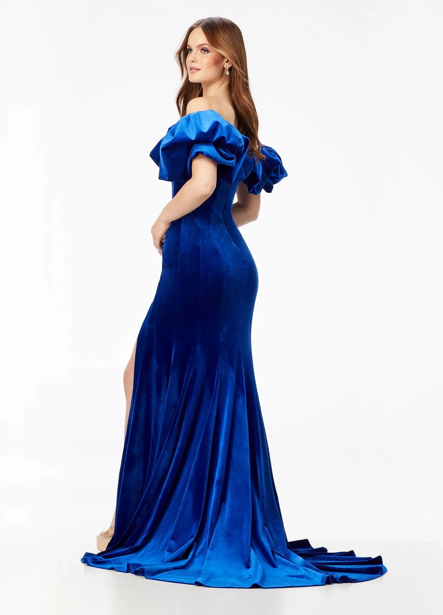 Ashley Lauren – Off Shoulder Velvet Gown With Oversized Ruffle | Runway Fashion Haus