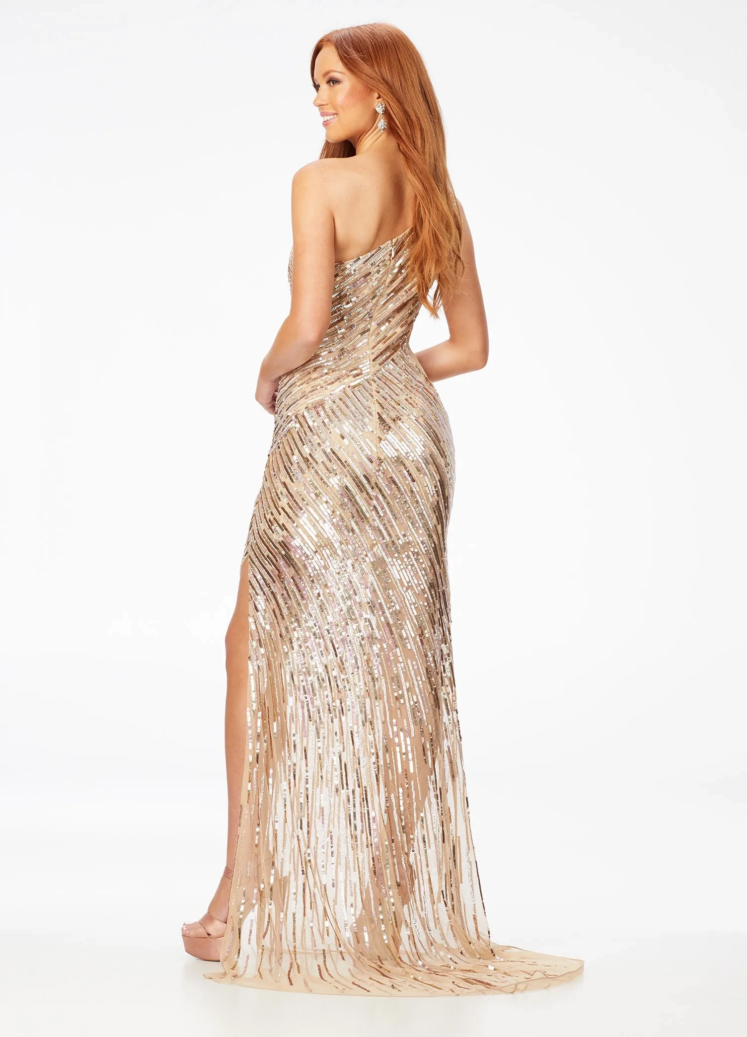 Ashley Lauren – Sequin One Shoulder Gown With Slit | Runway Fashion Haus