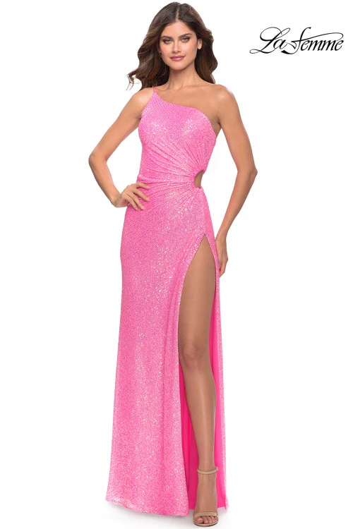 Sequined One Shoulder Cutout La Femme Prom Dress 31213