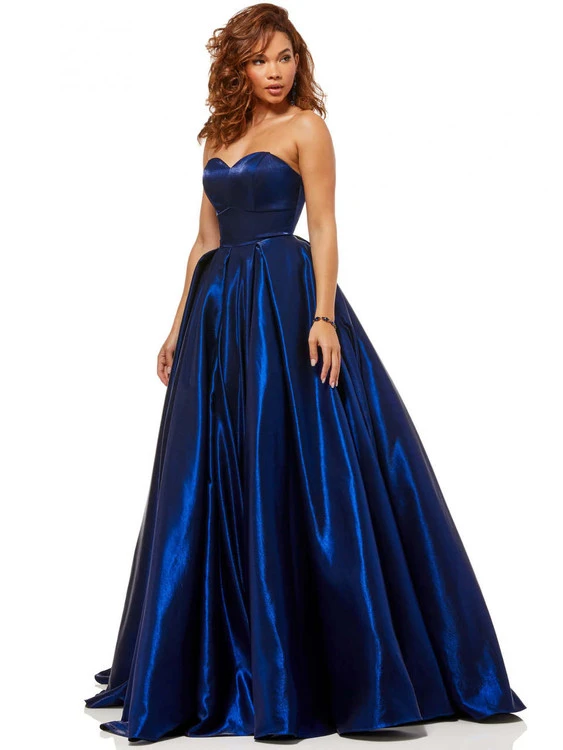 You are sure to captive everyone in this gorgeous Sherri Hill 52456 prom dress. The cross died shimmer dress has a sweetheart neckline, fitted bodice, and ball gown skirt. The corset style lace up back finishes this dress.